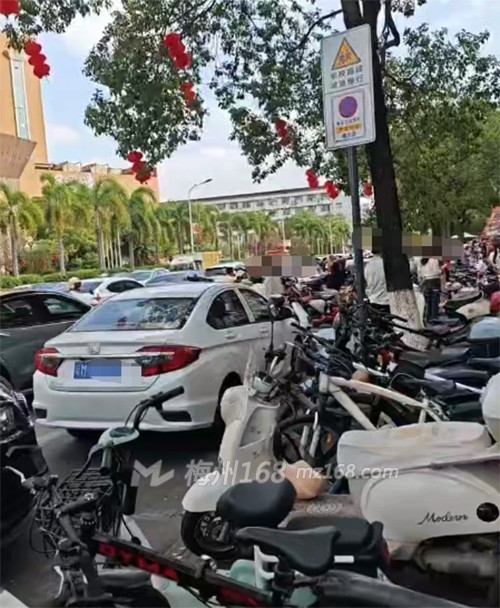 兴宁某小学附近人多、车多,交通又拥挤了起来…