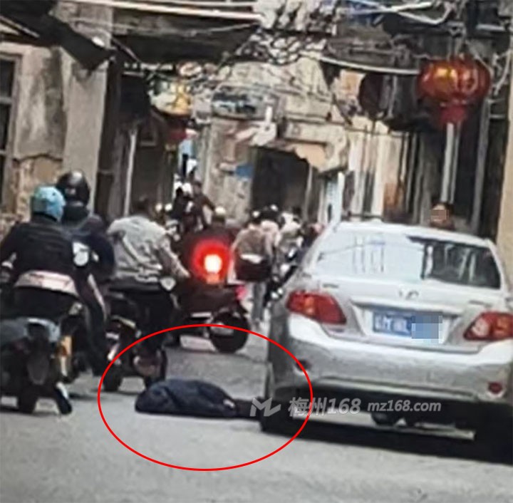 梅州富奇路发生事故,一人倒在地上…