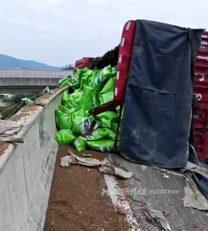 梅州高速路段一大货车发生侧翻!