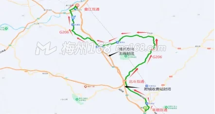 1.汕头往梅州方向主线行驶的车辆,从丰顺收费站驶出绕行G206国道。