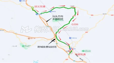 3.需从径义收费站进入高速往汕头方向行驶的车辆,绕行G206国道至丰顺收费站进入高速。