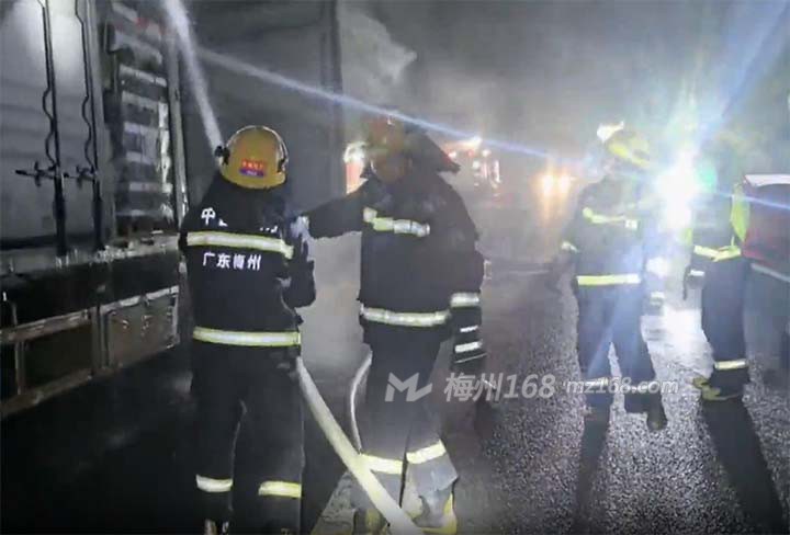 前几天晚上10点多,济广高速五华往兴宁方向一货车发生火情,幸好消防员及时赶到,避免了更大程度的损失。