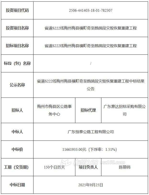 省道S222线梅州梅县横町奇至鹧鸪段灾毁恢复重建工程