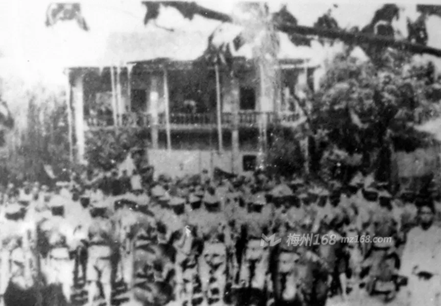 1925年,东征军在兴宁县政府宜楼前集结训话