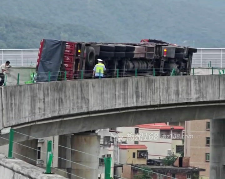 据梅州168网友爆料,今天(11月1日)中午2点多,北斗高速往大丰华方向,一辆大货车发生侧翻,载的是饲料……散落到桥底下去了……