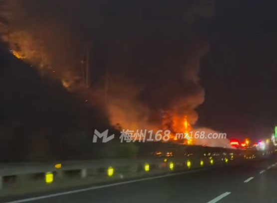 据梅州168网友爆料,今天(11月1日)晚上9点多,在长深高速梅县区下新屋大桥附近路段,兴宁往梅县方向,一辆大货车着火了!火势非常大!路边的植被也起火了。