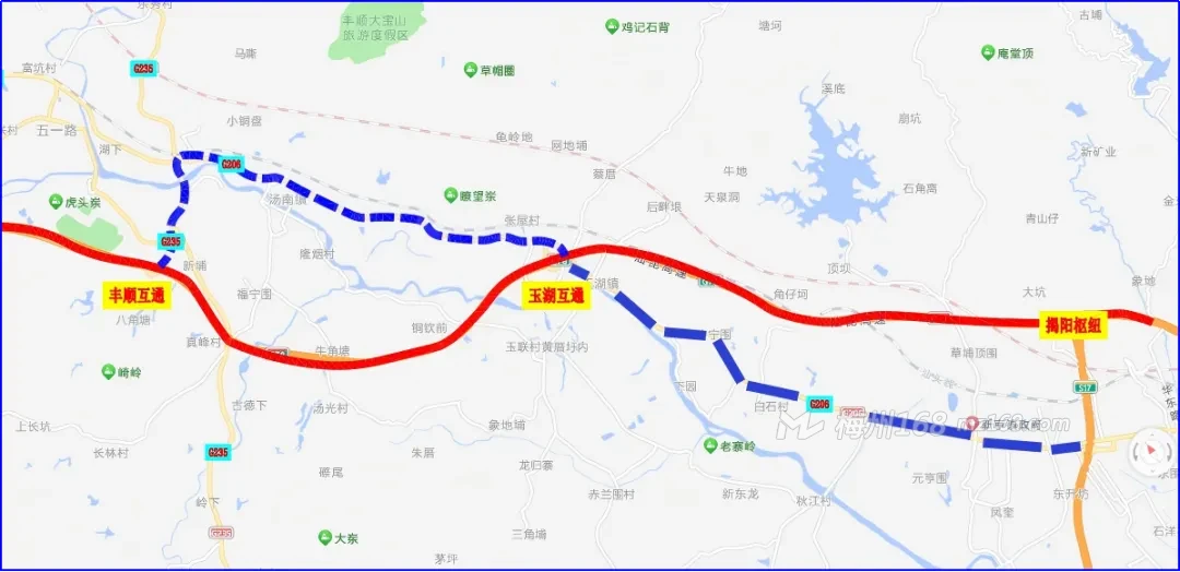 2.需从丰顺收费站进入高速往汕头方向的行驶车辆,绕行G206国道至锡场收费站重新进入高速。