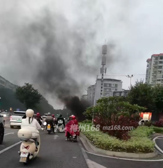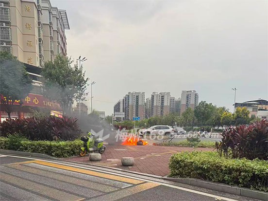 梅州一辆电动车着火了!现场火势不小…