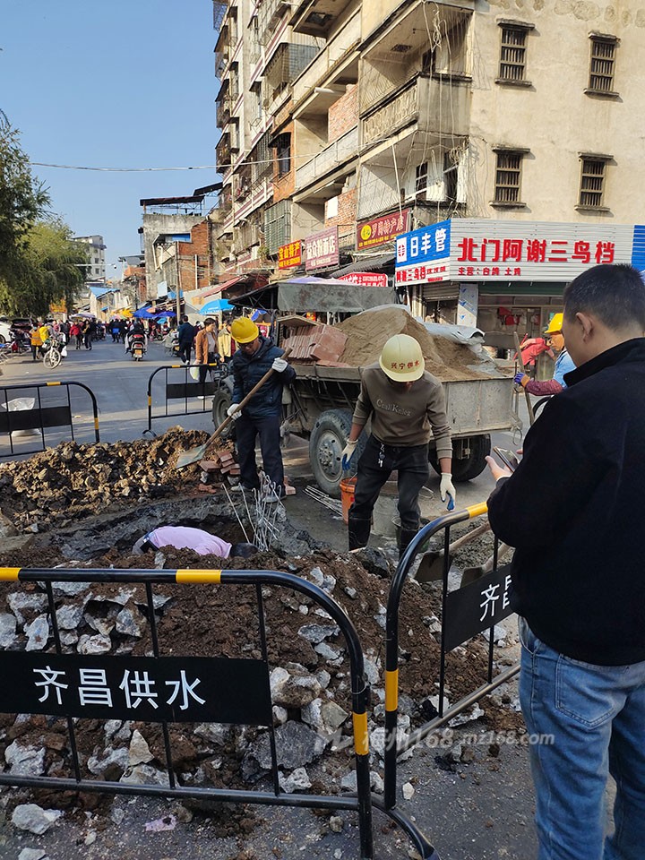 据梅州168网友爆料,昨天(12月5日)晚上,齐昌供水公司人员夜间巡查主管道发现,兴宁北门古城门楼侧爆水管,大漏,影响了附近片区的正常供水,供水公司组织一线抢修人员连夜进行抢修,直至今天(12月6日)上午10点多,抢修工作基本上完成,相关修复工作也于11点前完成了。