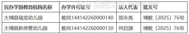 关于大埔县瑞龙幼儿园、新房管幼儿园注销民办学校办学许可证的公告